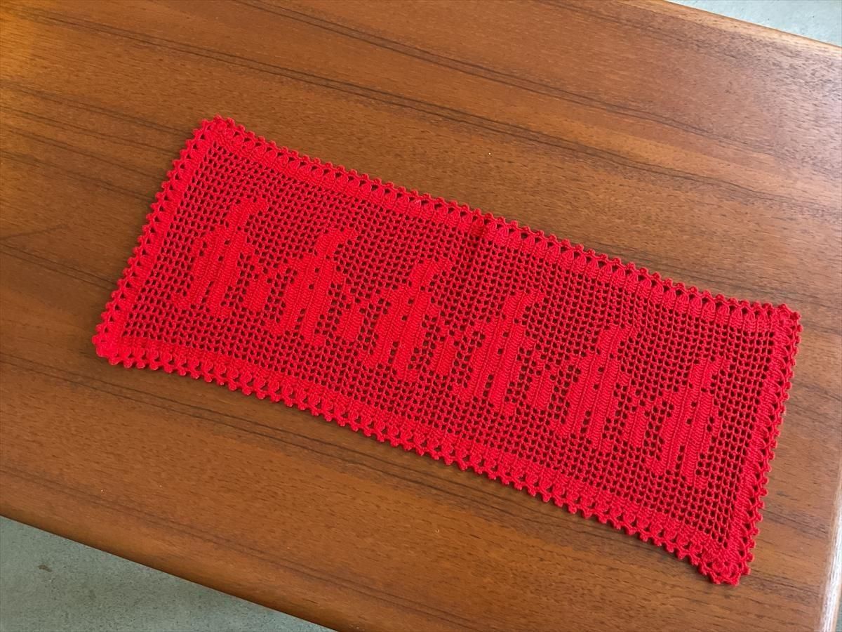 フィンランドで買い付けたクリスマスのテーブルセンターです。 トムテの模様がとてもかわいらしく、手編みのぬくもりを感じます。 古い生地ですので、多少の使用感はございますが、お楽しみいただけることと思います。