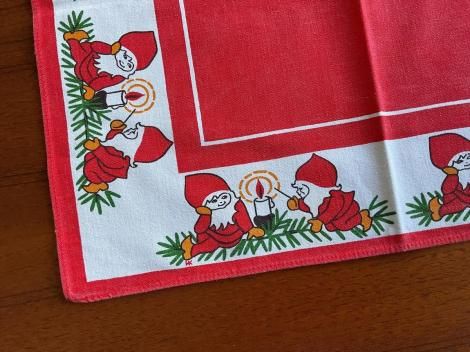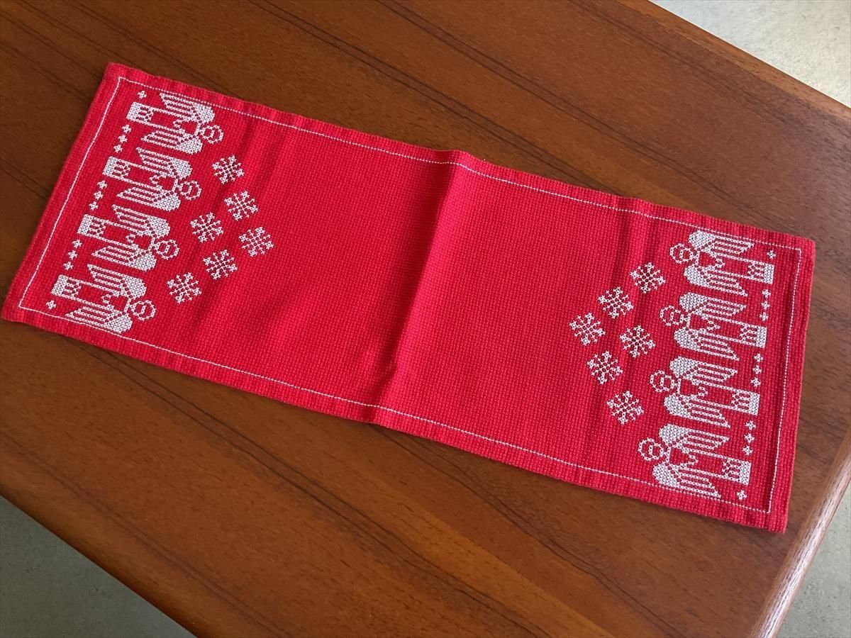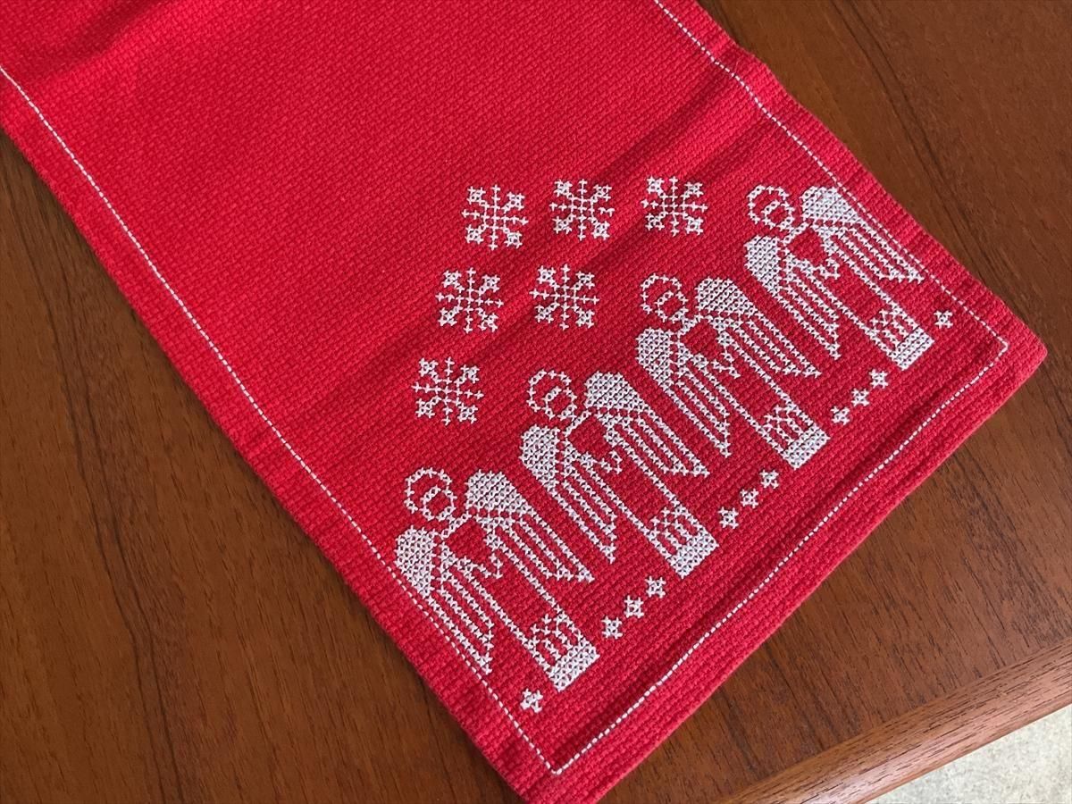スウェーデンで買い付けたクリスマスのテーブルセンターです。両サイドに白いクロスステッチで天使たちが描かれています。 古い生地ですので、多少の使用感はございますが、お楽しみいただけることと思います。